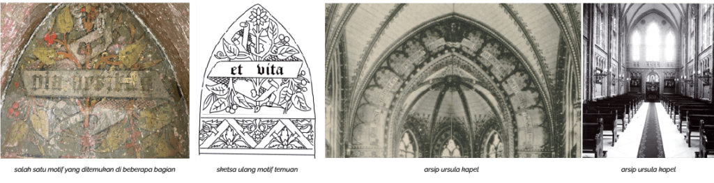 Selama proses pengelupasan cat, potongan motif gambar yang menceritakan sejarah kapel mulai terlihat di beberapa tempat. Tukang yang mengupas cat di dinging sontak terkejut karena setiap ia mengupas selalu ada potongan motif gambar. Kemudian tukang tersebut melaporkan kepada Sister Moekti dan Sister Nur yang membuat keduanya juga tidak percaya dan dianggap tukang tersebut mengarang. Setelah melihat langsung dan berdiskusi, temuan tersebut kemudian mendorong keputusan untuk merestorasi seluruh dinding kapel dan atap lengkung kayunya, mengembalikannya ke kondisi aslinya. Meski tidak diketahui kapan kapel dicat putih, arsitek mendapat informasi dari Suster Fransesco, mantan Kepala Sekolah, yang ingat bahwa kapel ini dulu lebih gelap dengan lukisan berwarna.